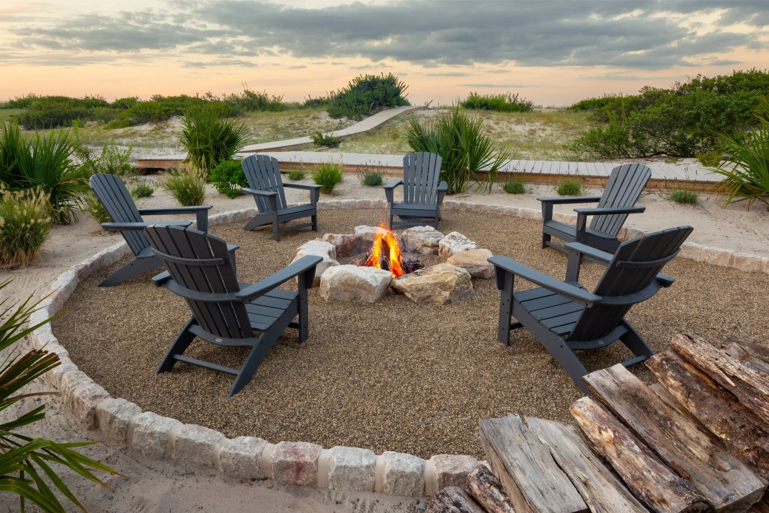 As daylight fades, soft lighting reveals the texture of the materials and the form of the plantings. The firepit near the dunes becomes the focal point, offering a quiet place to unwind and watch the horizon shift from gold to blue. The result is a landscape that balances elegance and endurance, capturing the rhythm and beauty of life by the sea.
